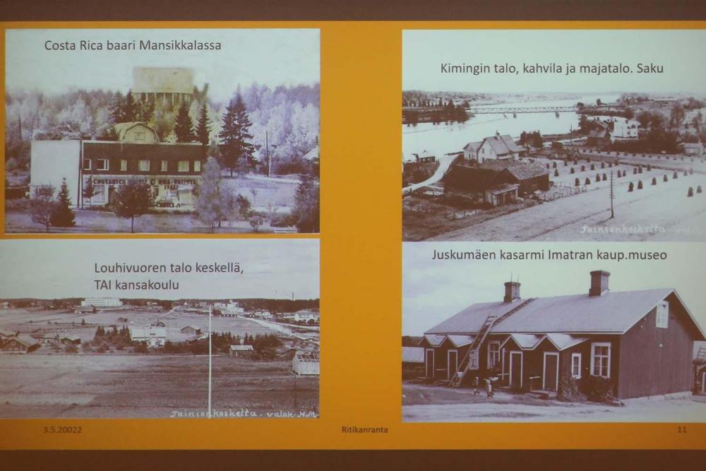 Tammikuun kuukausitapaaminenKeskiviikkona 10.1. Imatran KylpylässäRitikanranta. Paikallishistorioitsijat Liisa ja Veikko Puska