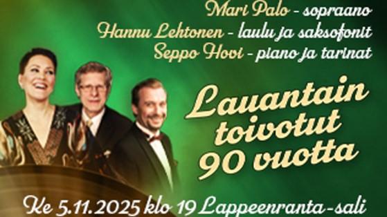 Radio-ohjelma ’Lauantain toivotut levyt’ täyttää 90 vuotta 2.11.25. Lappeenranta-salissa 5.11.2025 klo 19.00 kunnioitetaan hienolla konsertilla Suomen pitkäikäisintä, edelleen jatkuvaa radio-ohjelmaa.